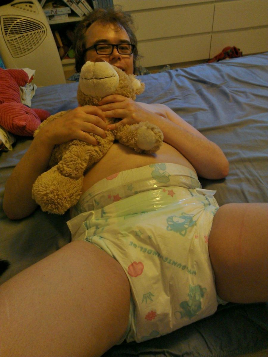 Here I am cuddling Toast the teddy just wearing a Fabine Exklusiv diaper. They are the best nappies I've ever tried.