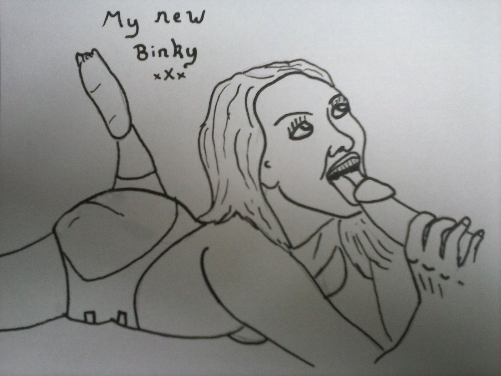 This girl is about to try out a special new pacifier her daddy has brought her..